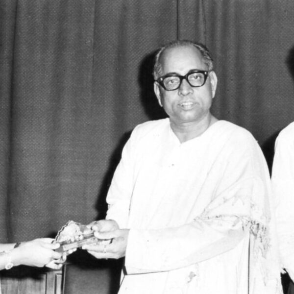 Receiving a prize from Shri M. Balamuralikrishna–Bharatiya Music and Fine Arts, Bombay